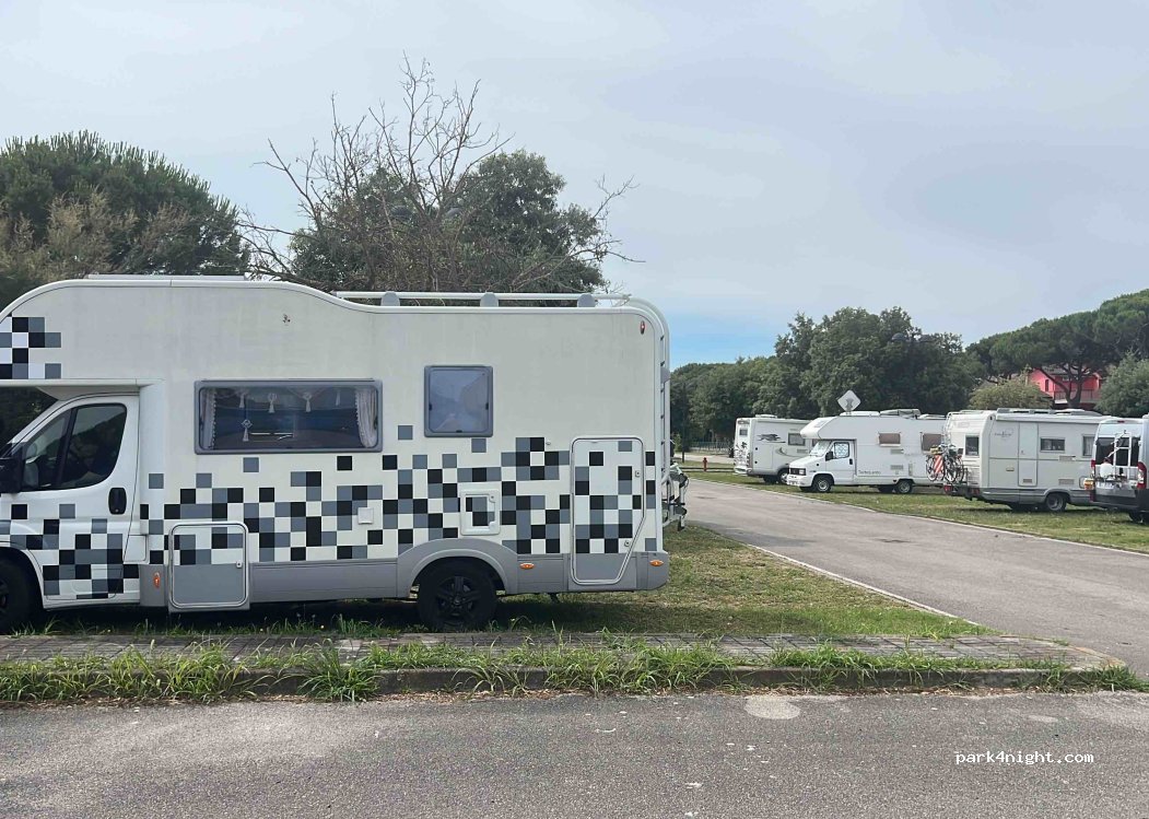 Area camper, adiacente a parcheggio auto, zona tranquilla, poco ombreggiato, a pagamento dalle 08.00 alle 20.00 € 12. Pizzeria vicina e centro a due passi.