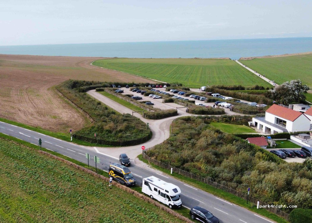 Seule solution pour découvrir le cap Blanc-Nez par le bas des falaises étant donné l'impossibilité de stationner en haut. Quatre places exigües pour camping-cars de dimensions réduites, manœuvres difficiles. Beau chemin bétonné pour accéder en 5 mn à la grève. Possibilité de gravir le Cap tant espéré par un sentier raide et admirer le site par en haut cette fois !