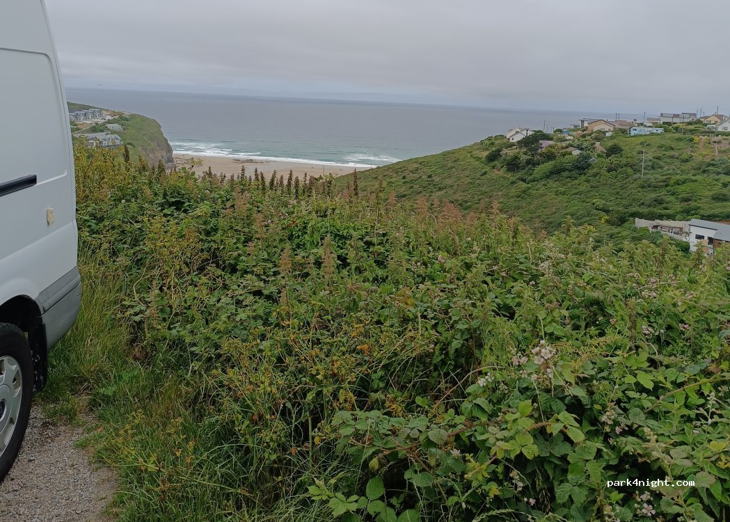 If you want free parking, over night stay, short walk to the beach, goodish surf, restaurants close by, pubs, shops within walking distance then this is your place. No complaints just when you want to go down to the town walk back down the hill till you see a smaller lay-by than the one your parked in, then your see a smaller lay-by than dirt track there, follow that down the hill but be safe