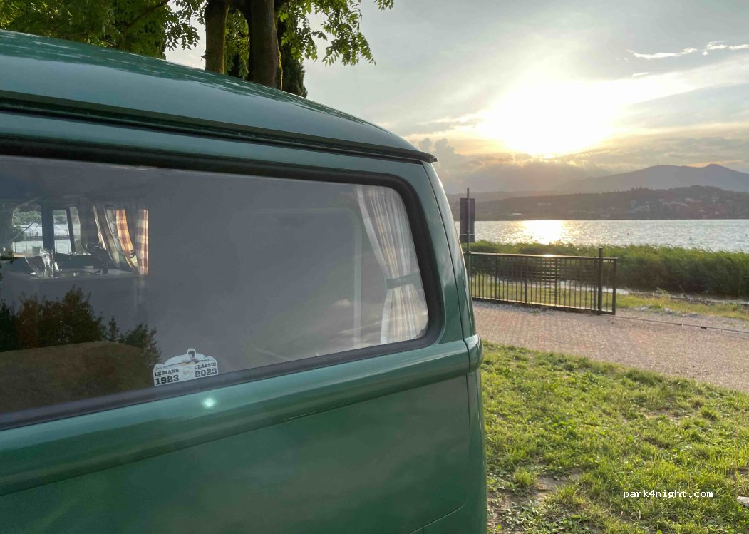 tout simplement incroyable! nous nous sommes arrêté pour une nuit et y sommes restés trois tellement notre emplacement était parfait : vue imprenable, l air du lac pour lutter contre la chaleur et l observation depuis l emplacement des enfants qui se baignent ! au top ! 79€/nuit pour 2 adultes 2 enfants en van