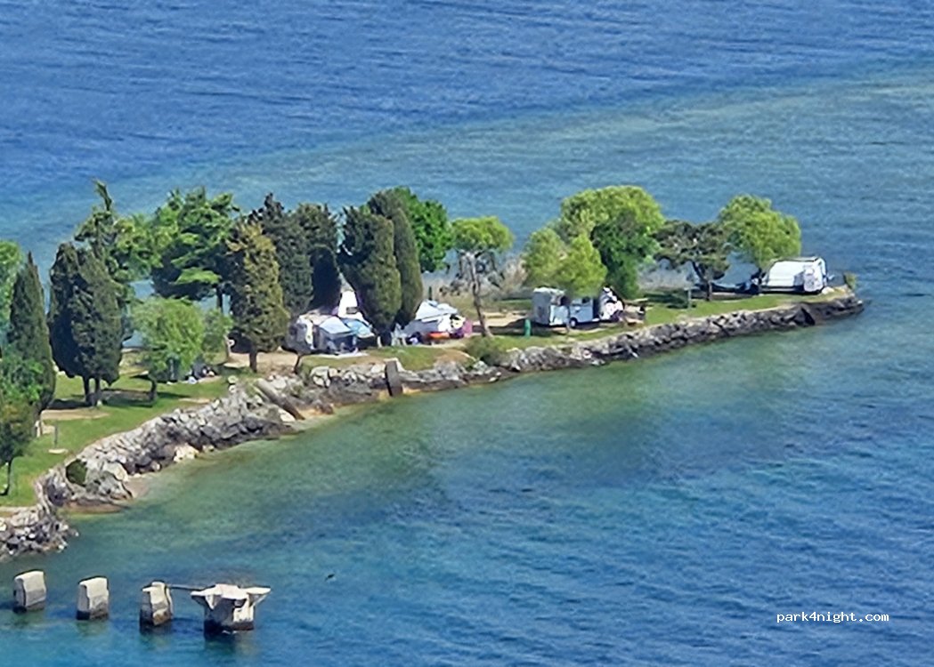Sehr schöner Campingplatz mit Blick auf den Gardasee und viel Charme. Ringsherum von Wasser umgeben auf einer kleinen Landspitze. Dienstleistungen sind alle vorhanden (Restaurant, kleiner Supermarkt, Spielplatz).