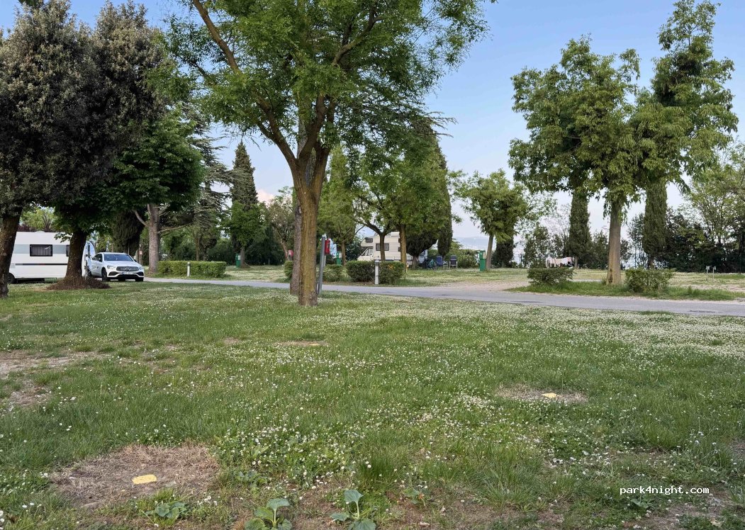 Sehr angenehmer CP mit Restaurant, kleinem Spielplatz daneben, sauberen und zahlreichen Sanitäreinrichtungen. Direkter Seezugang und auch "Fussweg" zur Insel San Biagio möglich. Die Stellplätze und auch die Zufahrtwege sind eher eng durch die Bepflanzung.