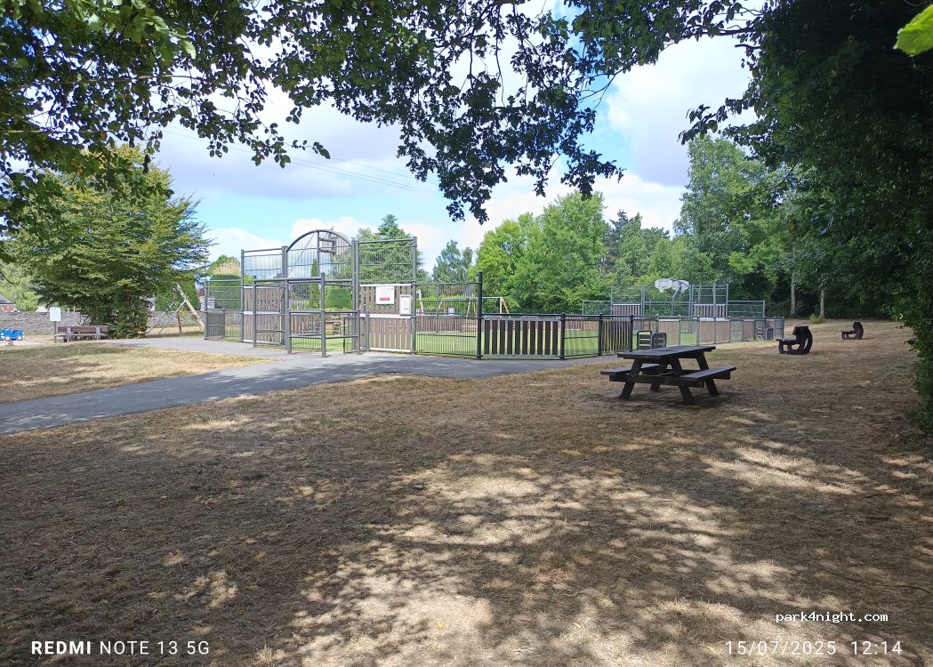 Parking sympa, facile d'accès, plat, à côté du stade,un petit coin d'ombre sous un arbre avec 2 tables de pic nique dans l'herbe. Petit plus du matin, il y a boulangerie en face.