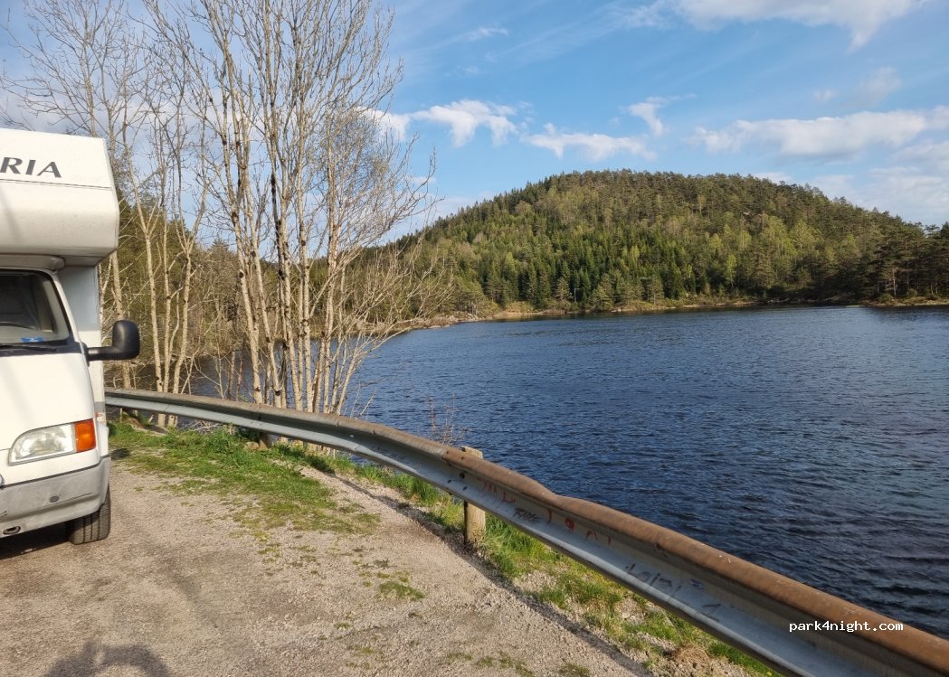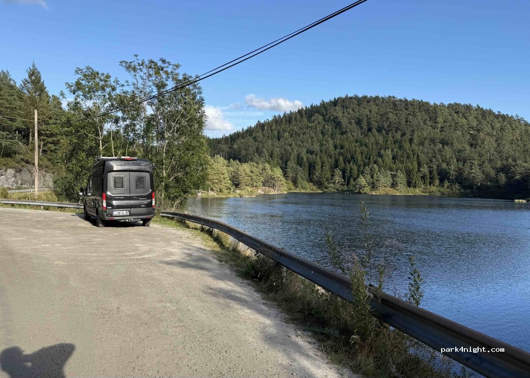 Pour une nuit, 35 min de l'arrivée du Ferry à Kristiansand. Très calme et très jolie vue, très peu de passage. Peu de 4G.