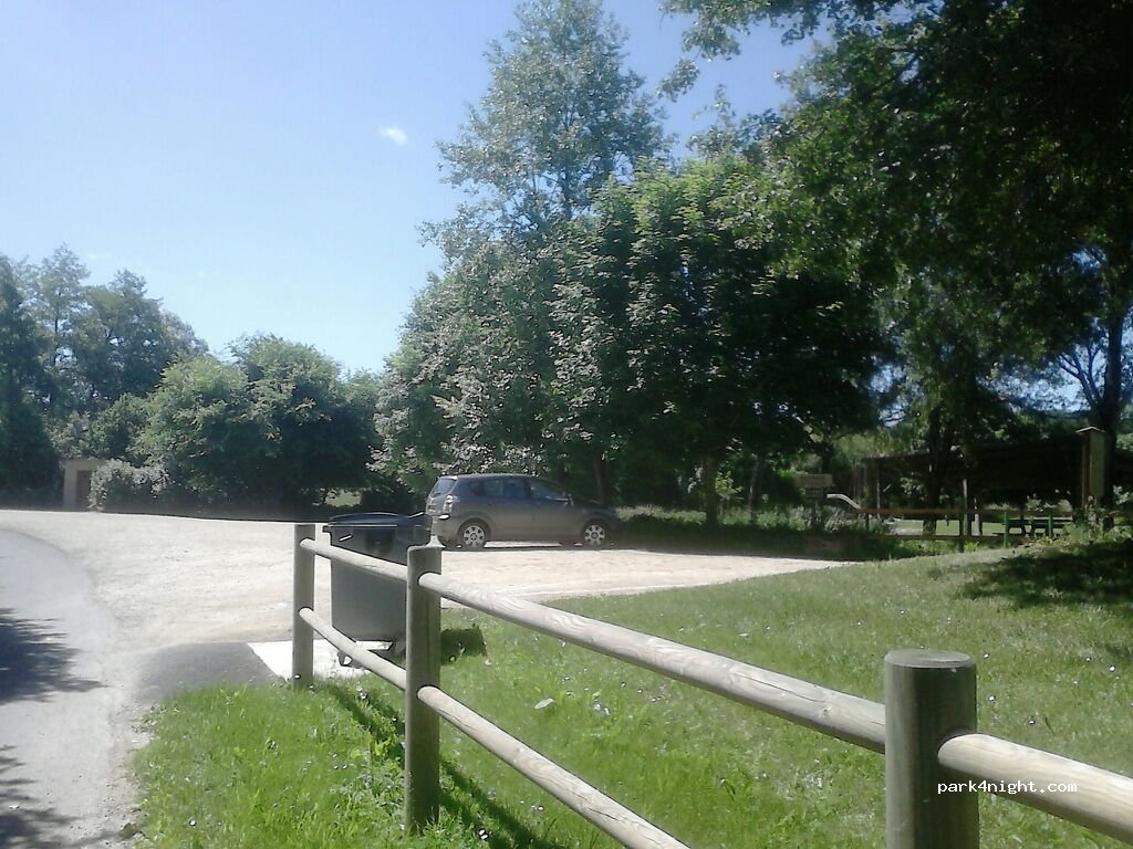 Petit parking très calme avec WC propres. Il y a une aire de jeux enfants avec balançoires et toboggan et de nombreuses tables de pique-nique. Le tout très propres et entretenus. Possibilité de pêcher sous réserve de carte de pêche.