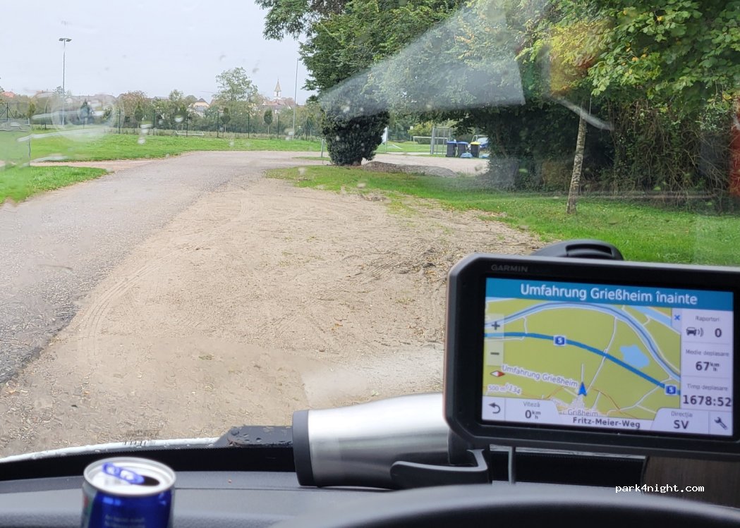 Parking du terrain de sport SF Grießheim. Bon emplacement pour une nuit. Très calme après 23h jusqu'à environ 7h du matin, on entend alors la circulation sur la route principale.