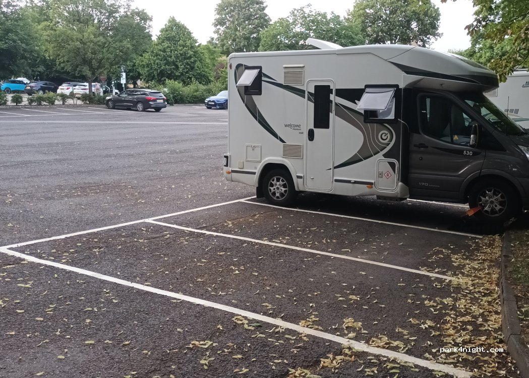 Free parking from 6pm until 8am. Short walk into the town and The Bell pub only across the road, nice food and friendly staff. It was a quiet night, if you get the right space its level enough in a van. locals in the morning were very pleasent as they walked by with their dogs.