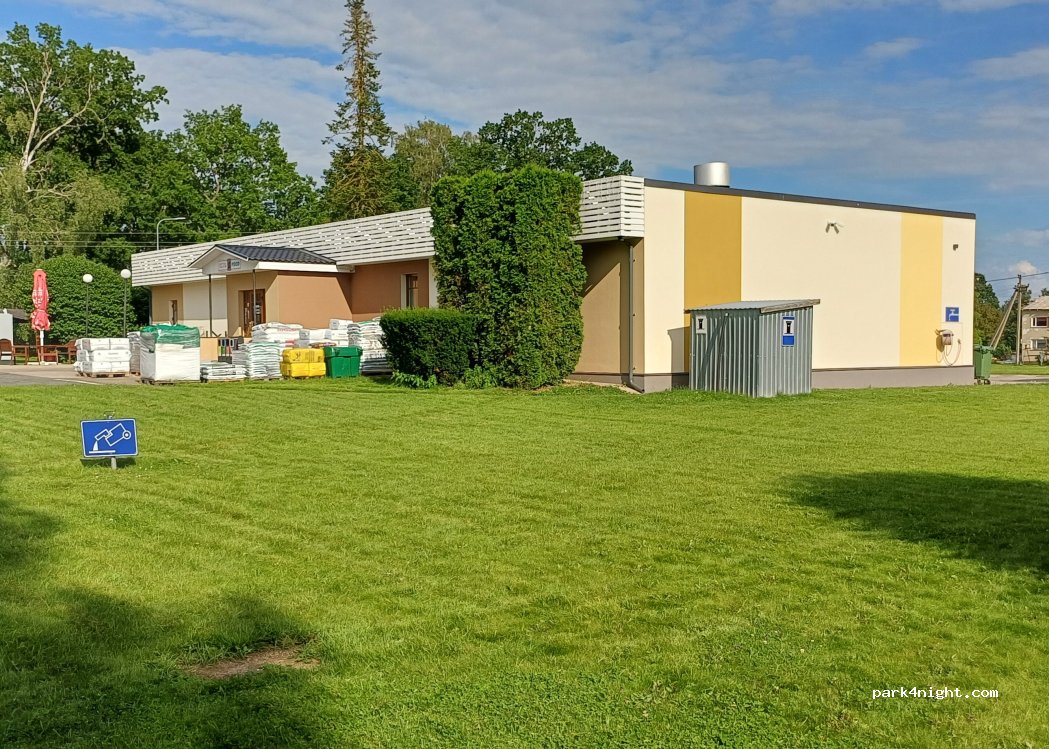 Nice place 4 km from Sangaste Castle. On the street, quiet at night. Complete supply and disposal. Very good restaurant with authentic cuisine. Grocery store and hardware store with housewares. Massage 50m away. Ideal for bike tours or motorcycle tours. There are also rooms for rent. Clean toilets and showers, as well as a sauna. Very nice owner.