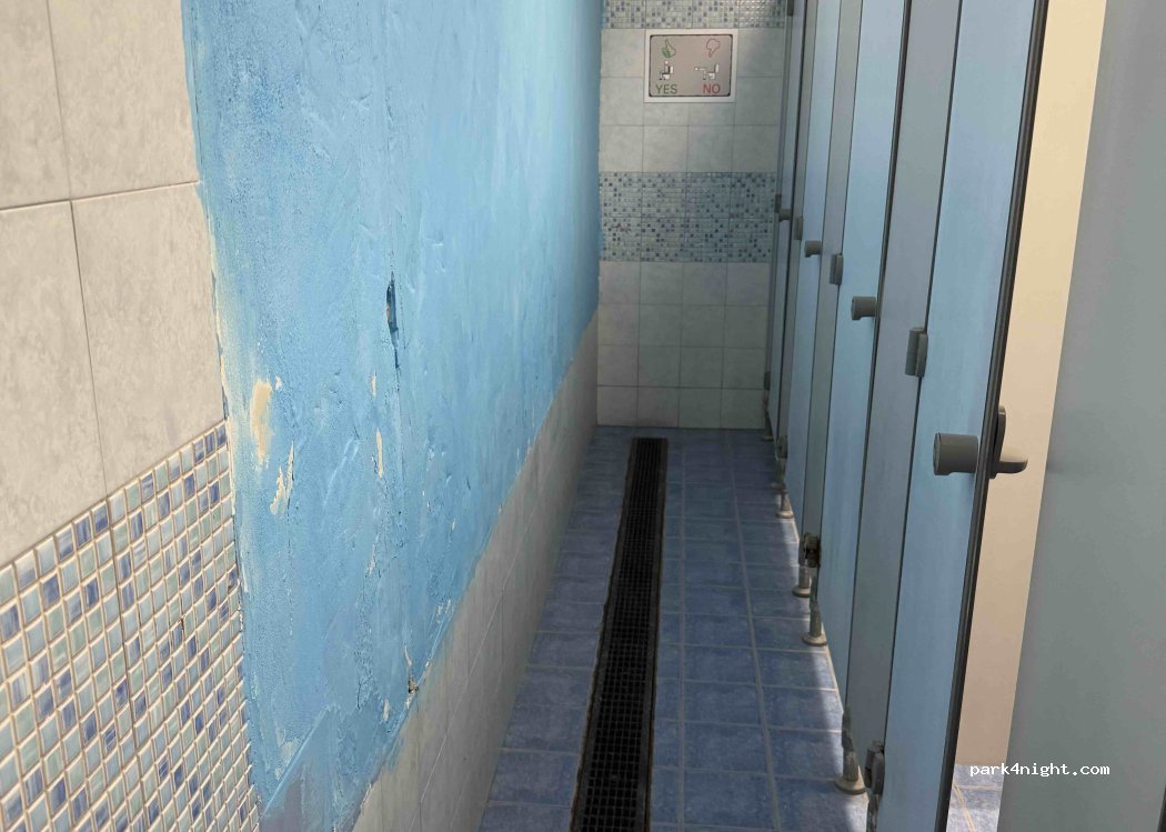Ein Stern für die Lage und ein Stern zum länger stehen (14 Uhr). Sanitär sehr alt, was nicht unbedingt schlimm ist, aber fürchterlich schmutzig. Die Damen müssen in den Duschen auf Plastikboxen stehen weil das Wasser nicht richtig abfließt. Die Wände sind schmutzig, die Armaturen rostig, einfach alles. 18€ plus 1€ pro Person und Tag Kurtaxe.