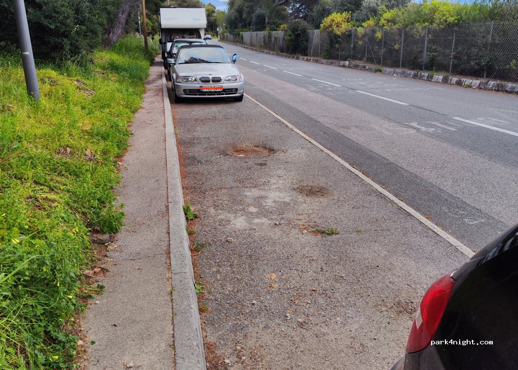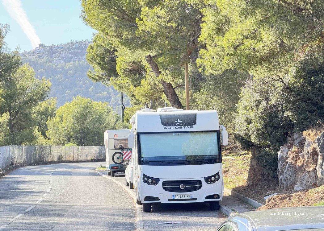 We were able to park there with our 7,4m long van. Our 2,4m width was maximum, we were almost on the road. During the night cars drive there really fast so you hear them little bit. Walk to Monaco about 40 minutes, be prepared for a lot of stairs on your way back.