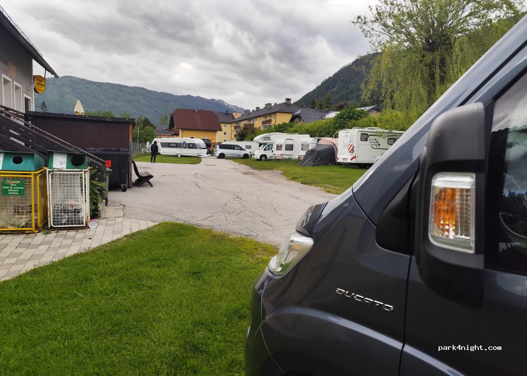 BESITZER HAT NOVEMBER 2020 GEWECHSELT! ... Ich bin von Wien kommend, auf der Durchreise, auf diesem kleinen, kuschligen Campingplatz (wegen dem grünen Rasen und der sanitären Anlagen, sonst eher ein guter Stellplatz) gelandet. Die neuen Besitzer erreicht man über die Telefonnummer an der Anmeldung (ich hatte noch kurz vor 21 Uhr damit Erfolg). - Der neue Preis für mich, mit 8 m Womo für 24 h, ohne Strom und san. Anlage : nur 15,10 Euro! Das ist total fair und in dieser Gegend wirklich toll, allerdings, aufgrund der Ausbaustufe des Platzes und da ich keine Extras genommen habe, auch entsprechend angemessen. - Eine wirkliche Empfehlung wenn man auf der Durchreise ist, aber nicht nur dann, denn einerseits ist das Haus, das zum Platz gehört, auch eine Gastwirtschaft - und andererseits bietet der relativ kleine Ort auch eine ordentliche Infrastruktur, sowie viel Natur und wunderschöne schneebedeckte Berge drumherum! - Was wohl noch etwas verbesserungswürdig wäre, wäre die Beseitigung einiger Rasenschäden, da dadurch wohl so einige der guten Stellflächen leider gesperrt worden sind. - Ich würde es wie die Holländer machen und jeweils zwei gepflasterte- oder mit Kies gestreute Spurschienen machen und da wo der Markisen-/Vorzeltplatz ist, jeweils ein komplettes Quadrat pflastern. - Ferner liegt direkt neben der Hälfte des Platzes ein Fußballplatz. Dieser ist mit Sichtschutz-Planen gegen Blicke abgeschirmt. Allerdings kann ich mir vorstellen, dass es manchmal tagsüber auch etwas lauter werden kann, wenn Spiele stattfinden. - Zur Lautstärke ist aber zu sagen, dass es hier abends richtig ruhig ist! Es ist auch Laternenbeleuchtung vorhanden! Man kann daher nicht so leicht vom Weg abkommen, wenn man abends "nach Hause" kommt. Die Straßen hört man abends so gut wie garnicht, nur ganz leicht, - und man kann sich ja auch an den Anfang des Platzes stellen, denn dort ist man vor allen erdenklichen Geräuschen sehr gut geschützt und hat zudem noch gleich die Ver- und Entsorgung direkt gegenüber, in 20 m Entfernung. - Platz ist hier für ca. 10-15 Womos und auch WOHNWAGEN werden offensichtlich gerne gesehen! Die Länge der Plätze reicht jeweils von 5 bis 15 m. Das reicht sogar für Gespanne aus Wohnwagen und Zugfahrzeug, oder Wohnmobil mit großem Anhänger! Es gibt noch keine Platzeinteilung, daher nehme ich mal an, dass man angehalten ist, möglichst platzsparend zu parken.
