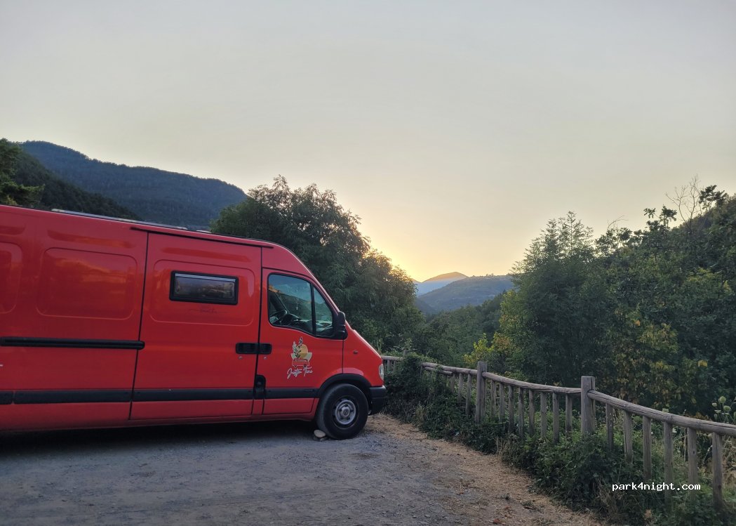 Tot i que no está permès fer nit en aquest aparcament, hem passat una nit degut a que la carretera que puja des de Puyareuego és lenta i es va fer tard