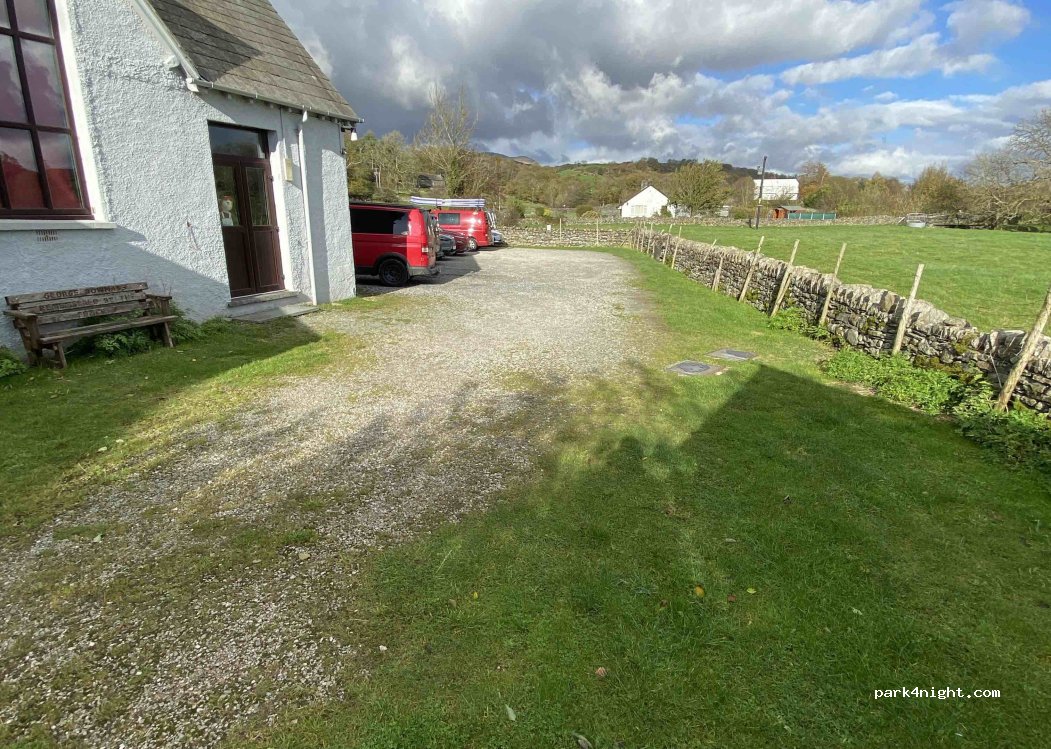 Townhall parking kan gebruikt worden om te parkeren tegen een redelijke vergoeding van 3 pond op basis van vertrouwen. Houd er rekening mee dat van zaterdag op zondag de parkeerplaats niet gebruikt mag worden. Klein dorpje zonder faciliteiten. Gewoon prima plekje om een nachtje te slapen.