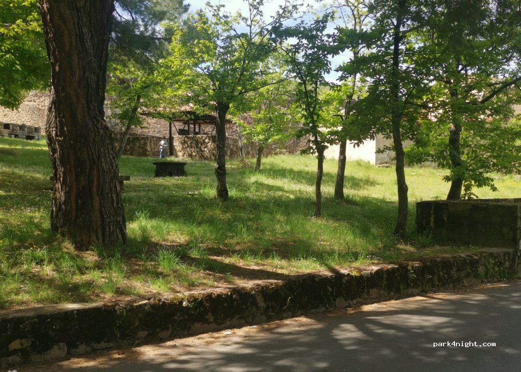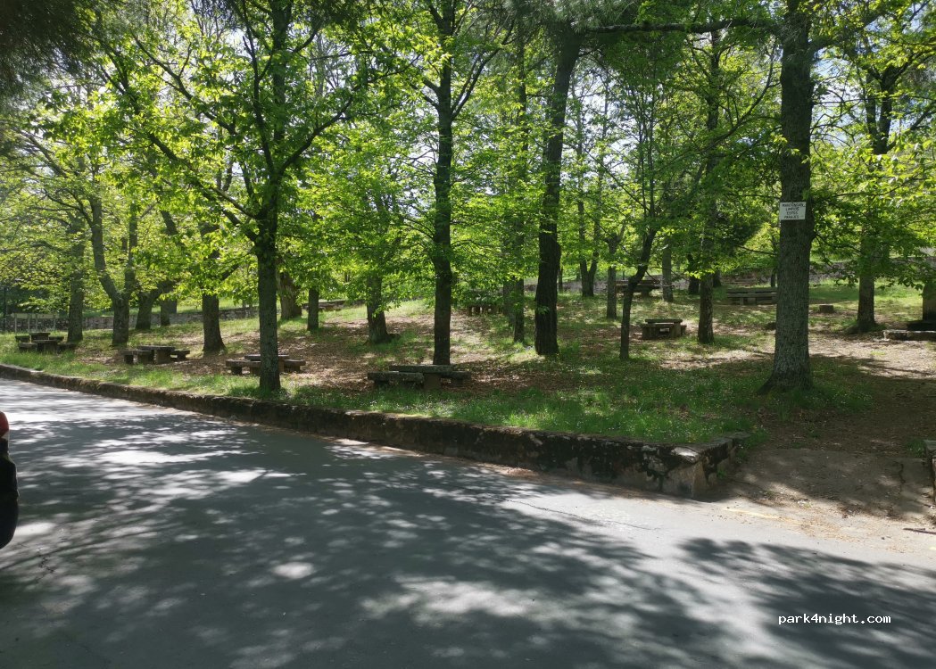 Nosotros llegamos de noche y no nos fijamos en los carteles. Una ac y nosotros dormimos. La policía local pasó dos veces y la nacional una vez. Ni nos miraron. Nos cambiamos del aparcamiento de la Fuente del Lobo por la prohibición de pernoctar. Así que por eso dormimos allí. Hay rutas de senderismo y bici. La gente tranquila y amable. Por lo menos nuestra experiencia
