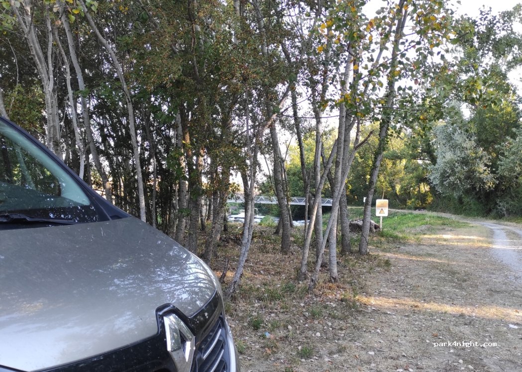 Endroit calme en nature. De la place pour plusieurs voitures. attention deux accès : un limité avec barrière 1m90 mais possibilité de faire le tour de l'autre côté. Beaucoup de mouches au matin