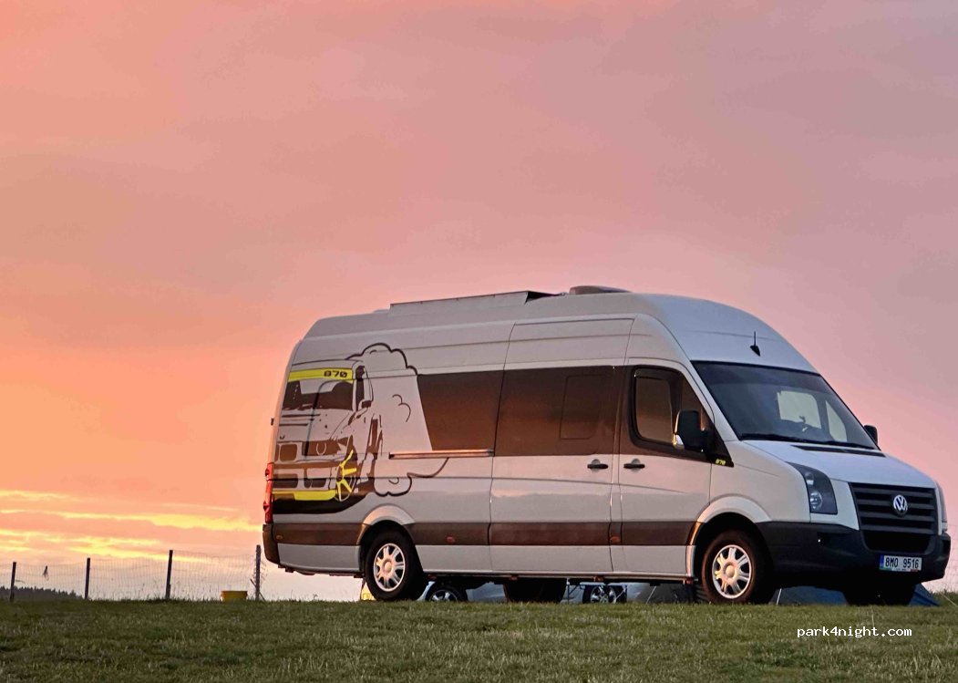 Nice place with beautiful lake view. A bit sloping ground so need a decent leveling for motorhome. No service, no ele, only toilets and paid showers. We paid 240Kc for camper and 2p in September.