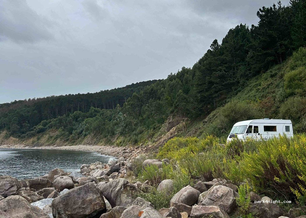 Ein absoluter Traum hier. Tür auf und der Atlantik ist direkt vor der Tür. Während des Tages überraschend viel los. Anfahrt ist super ausgebaut und auch mit großen WoMo zu bewältigen. Ruhige Nacht. 3 Bänke sind auch vor Ort.