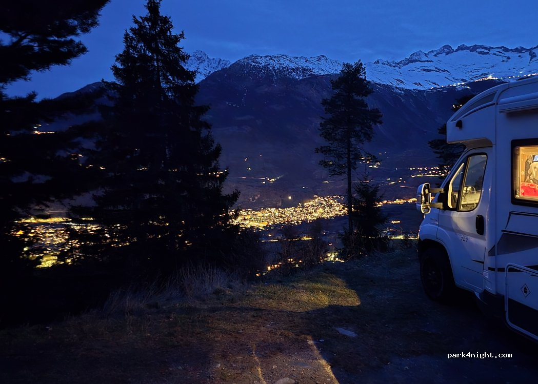 Small space by the roadside with a nice view of Brig. Possibility to eat a bit, maybe sleep. Place for a small bus.