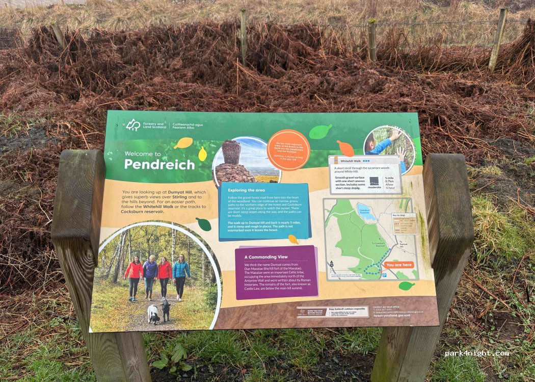 A very quiet car park with a level hard surface and lovely views. Great walks into the forest to the reservoir. Handy for Stirling, if you go into town try the park and ride, it’s free!