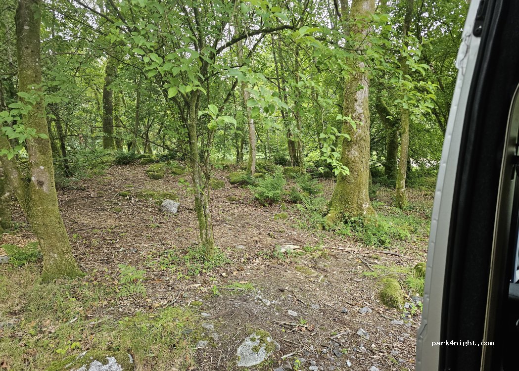 Limited to 4 campers, no longer than 7m. Lovely spot, level and peaceful. Lots of walks and mountain bike rides. Well worth the £7 overnight charge.