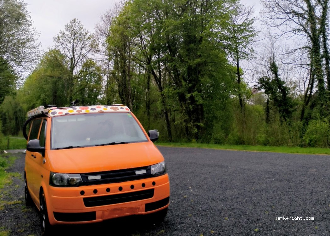 Nous avons dormi une nuit en van. Bel espace, petit table de pique nique et voie verte juste à côté. Une poubelle serait bienvenue. Hyper tranquille un samedi soir.