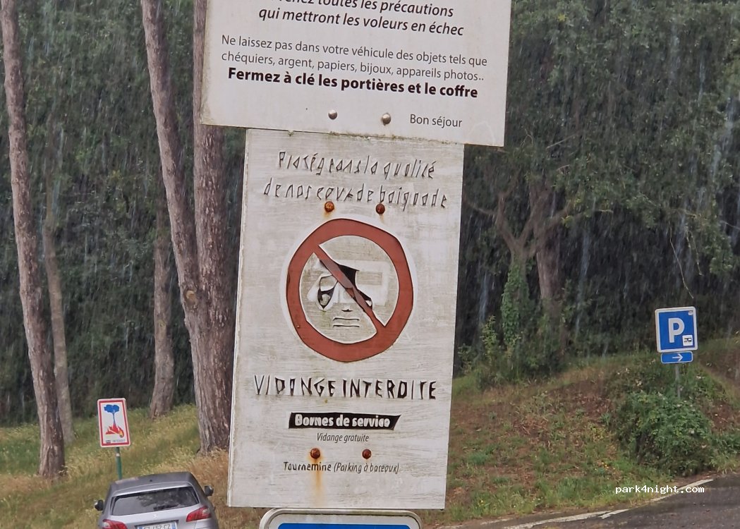 emplacements camping car parfait et les gendarmes passent pour verbalisé les voitures sur les emplacements cc. Mais attention, ici nous sommes en zone blanche et qui plus ai la végétation bloque l'usage de la parabole.