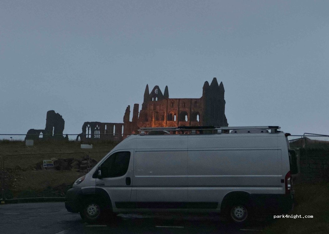 With having a coach conversion motorhome we find places hard to get in but we did our homework and found this had coach parking, it has fantastic views with a small walk to the Abbey. Town was very close with an amazing atmosphere and great fish and chips! There were quite a few campers but no one bothered us or moved us on. Free until the 1st of march. (Ignore the signs as wrong as advised).