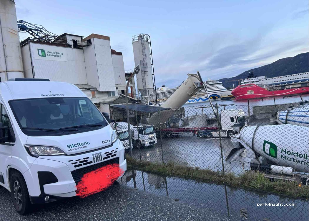 Parkplatz nähe Stadtzentrum und gut zu erreichen - ohne in den direkten Stadtverkehr zu müssen. Mit Rad/Scooter ca. 15 min. bis Brygge. Räder/E-Scooter vom Parkplatz in unmittelbarer Nähe zum Leihen via App. Parkplatz allerdings nicht kostenfrei, er befindet sich in einer Parkzone. Bezahlung problemlos über die App 'P i Bergen' möglich. Für Camper bis 6 m optimal nutzbar. Standen hier nur am Tag.