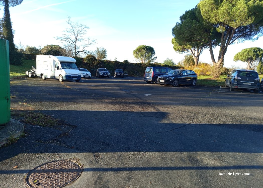 Parking gratuit au bout d’une résidence avec des grandes places , idéal pour faire une pause le midi ou passer une nuit, à quelques mètres, plage en herbe pour une baignade rafraîchissante dans le Tarn. La nuit a été très calme