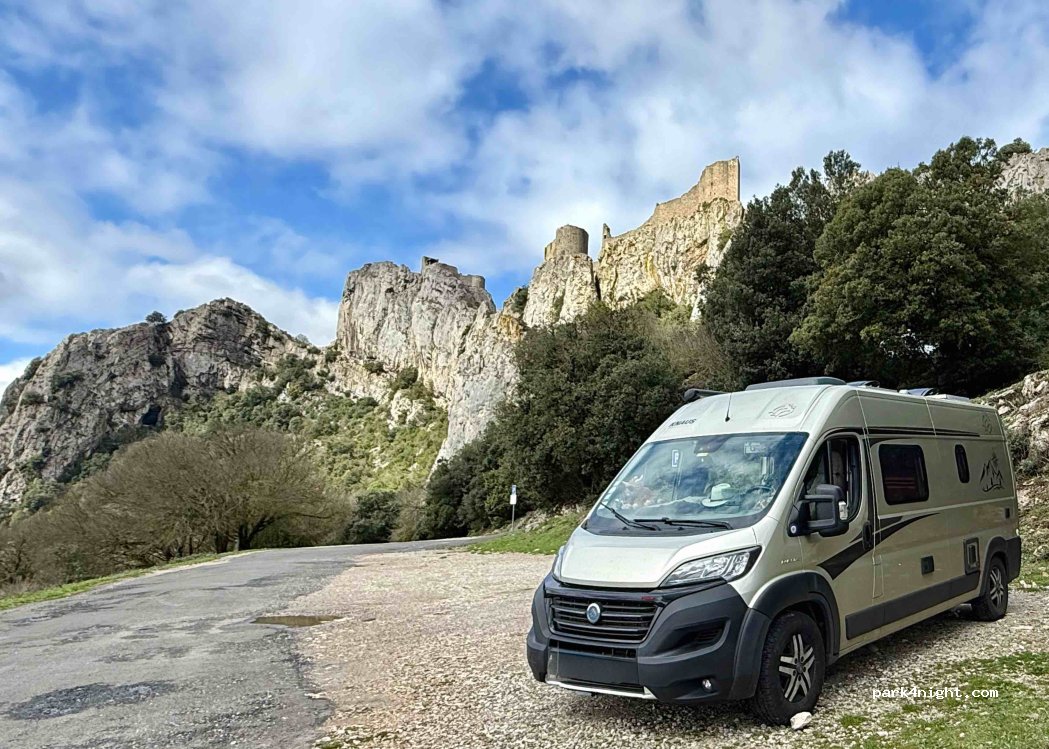 Disponible del 1 de septiembre al 30 de junio. El aparcamiento de autocaravanas para el castillo de Peyrepertuse en verano se encuentra aquí.