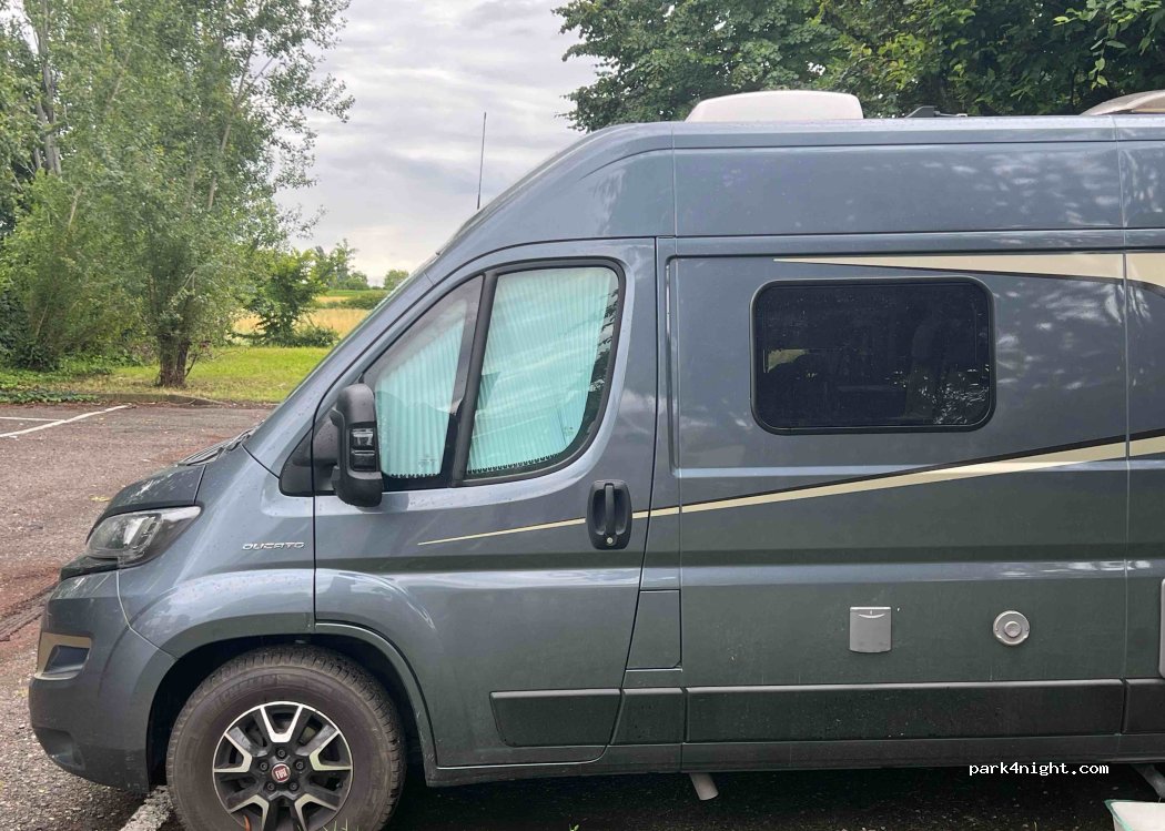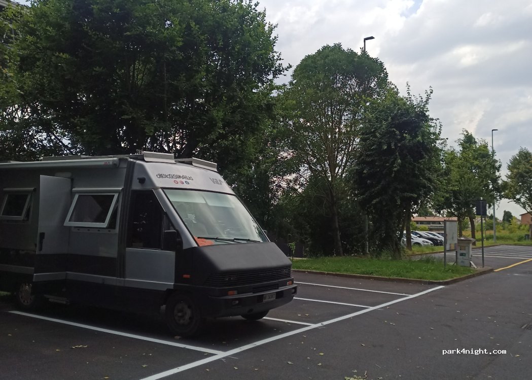 Idyllic little farm with many different animals (ponies, dogs, cats, chickens, rabbits, bees, insects of all kinds...) and a very nice host who speaks German and Englisch, has lots of good tips for the area and his mom, who likes to speak in Italian and bring apricots or blackberries. There is a mini pool to cool off in and you can rend bikes and rickshaw. The bathroom is very modern and clean. By the nearby river there is a nice beer garden with delicious foccacia. There are various small specialties to buy, such as eggs, honey, jam, wine, vinegar and olive oil. A trip to Mantua is recommended and it is half an hour from Lake Garda or Verona.You park in the field, little shade for the summer, sometimes music coming from the restaurant on the river.