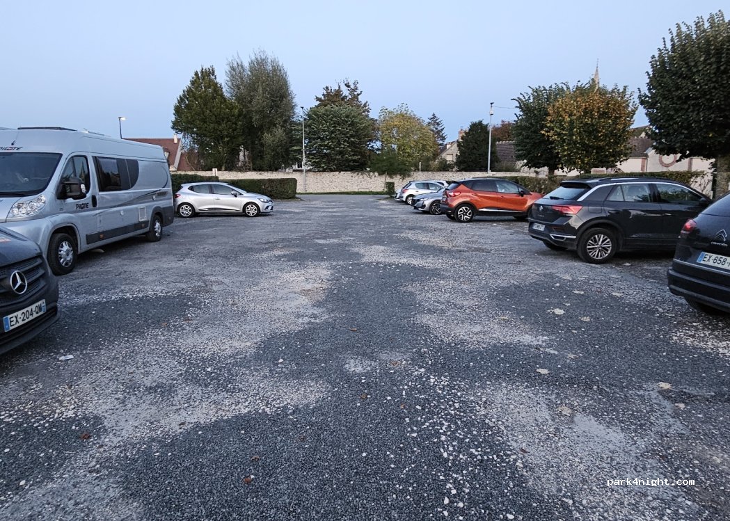 nuit du dimanche 1er au lundi 2 juin Emplacements plats, sol gravillonné, poubelles à proximité. Nous avons passé une nuit très calme. Boulangerie à proximité (vers l'église) ouverte 7/7 de 7h à 20h. Merci à la commune pour la gratuité du parking.