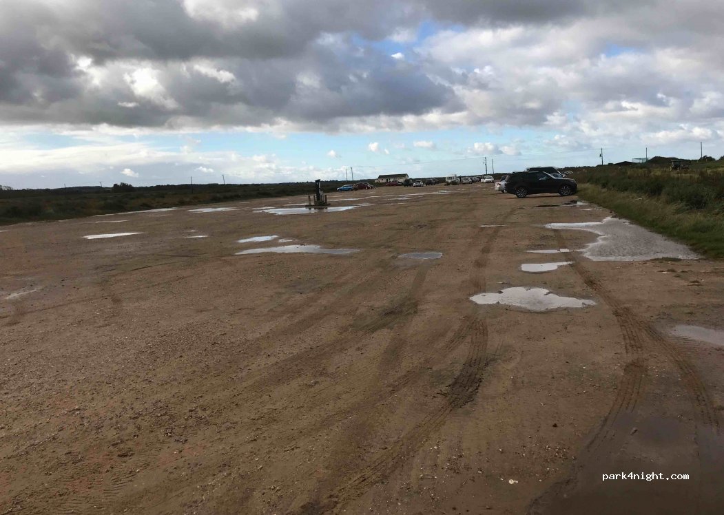 Aire de stationnement pour la plage de Brancaster. Route d'accès étroite avec des lieux de passage. 9 GBP pour le stationnement toute la journée en été 5 GBP en hiver. toilettes publiques et kiosque alimentaire au parking.