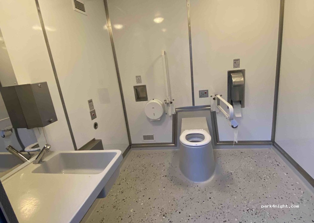 super Platz auch im Winter geräumt und streut. in der früh würden alle Toiletten gereinigt und Müllbeutel entleert. einen separaten Raum zur Toilettenentleerung war auch vorhanden. super für eine Nacht zum stehen!