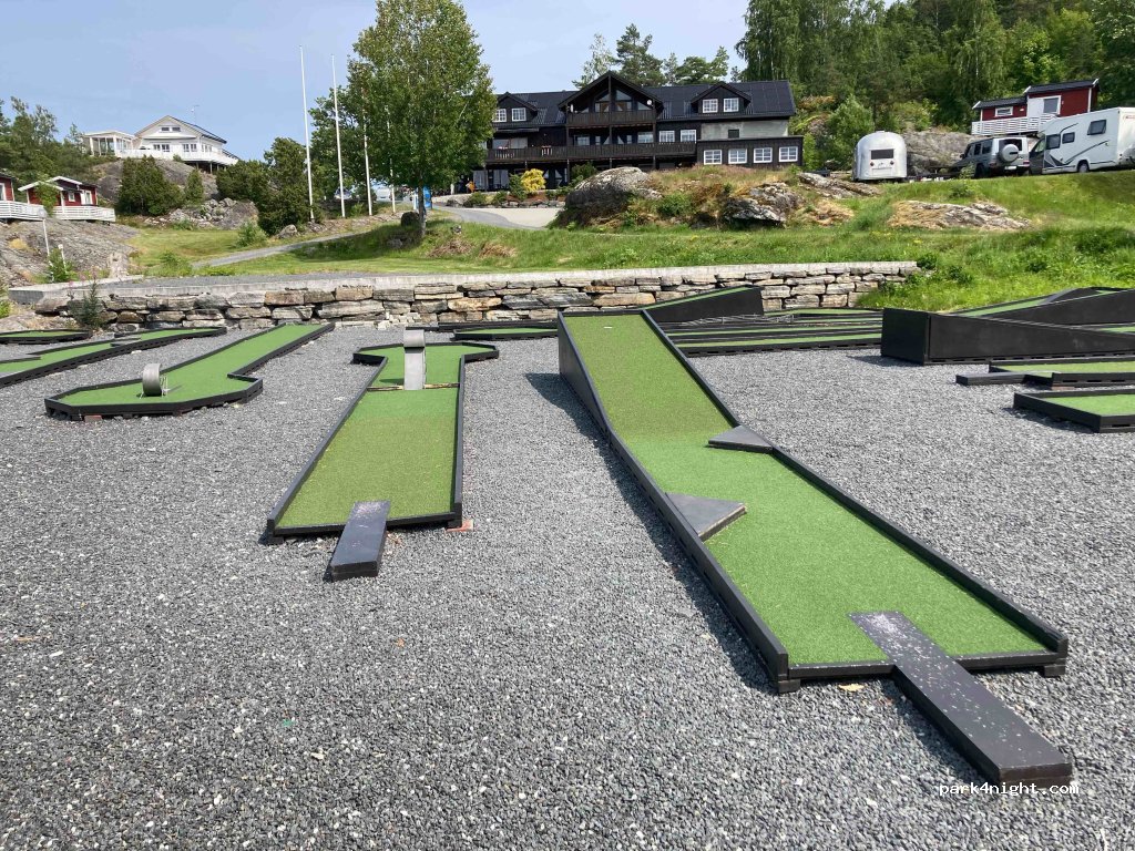 Schöner Platz am Hang mit schönen Stellplätzen. Sanitär sauber und reichlich, ordentliche Küche. Schöne Minigolfanlage. Waschmaschine, Trockner und Minigolf waren gratis, 13.8. schon Nachsaison! Daher 2 Personen mit Caravan 425 NOK. Schöner Spielplatz und Strand. Schade nur, dass das schöne Bad mit Riesenrutsche und das Restaurant auf Grund der Nachsaison schon geschlossen waren!