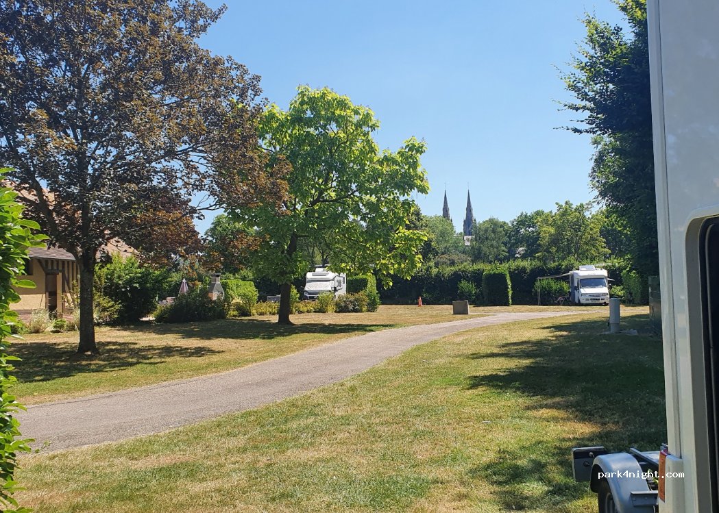 Charmant camping, propre, bien délimité, accueil sympathique, commerce et centre à proximité 200 m, 13 euros pour 1 camping car Et 2 pers