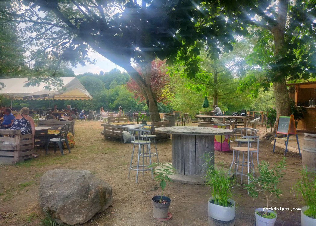 Arrêté juste pour le midi. Endroit très agréable. Barrière de haute ouverte ce jour. Etendu d'herbe ombragée en bord de rivière avec table et WC. Il y a aussi une petite guinguette avec produit locaux et fait maison.