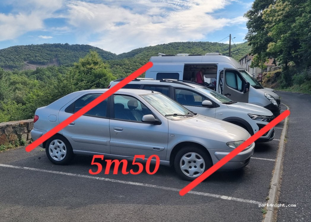 Sloped parking and above all limited to vehicles not exceeding 5.5 m in length