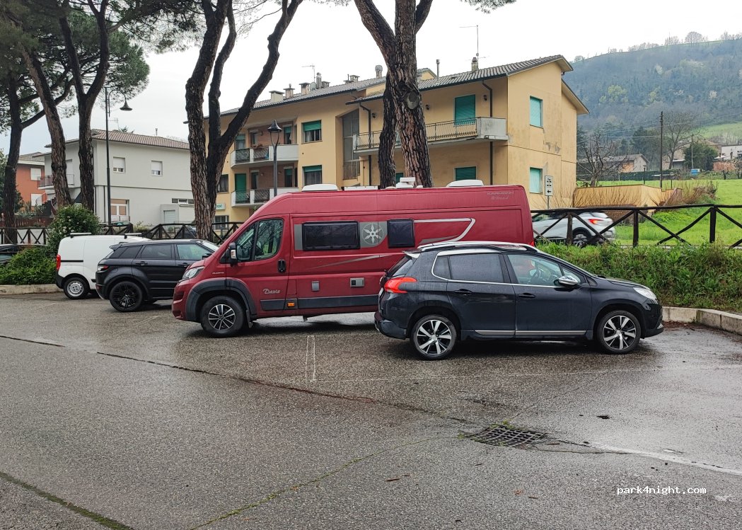 Posto tranquillo.. corrente elettrica gratis.. sosta di massimo 72 ore.. bisogna scrivere sul cruscotto o finestrino quando sei arrivato.. acqua a pagamento e scarico acque gratuito. Conad a pochi passi per fare la spesa. Di notte un po' di casino e qualche ragazzino agitato.. ma nulla di esagerato e dormire si dorme bene. Ci torneremo se necessario.