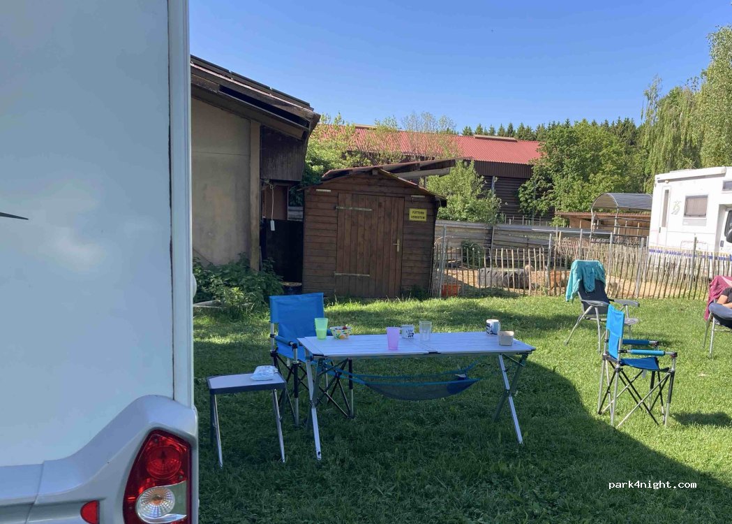 L'emplacement est situé dans une ferme biologique, dans un endroit très calme. Pour passer la nuit, il faut acheter du pain à la fromagerie de la ferme. L'emplacement est situé dans un pré. Le Wi-Fi est disponible pour les clients. L'électricité est disponible sur demande. Les toilettes se trouvent en face de la boutique de la ferme.