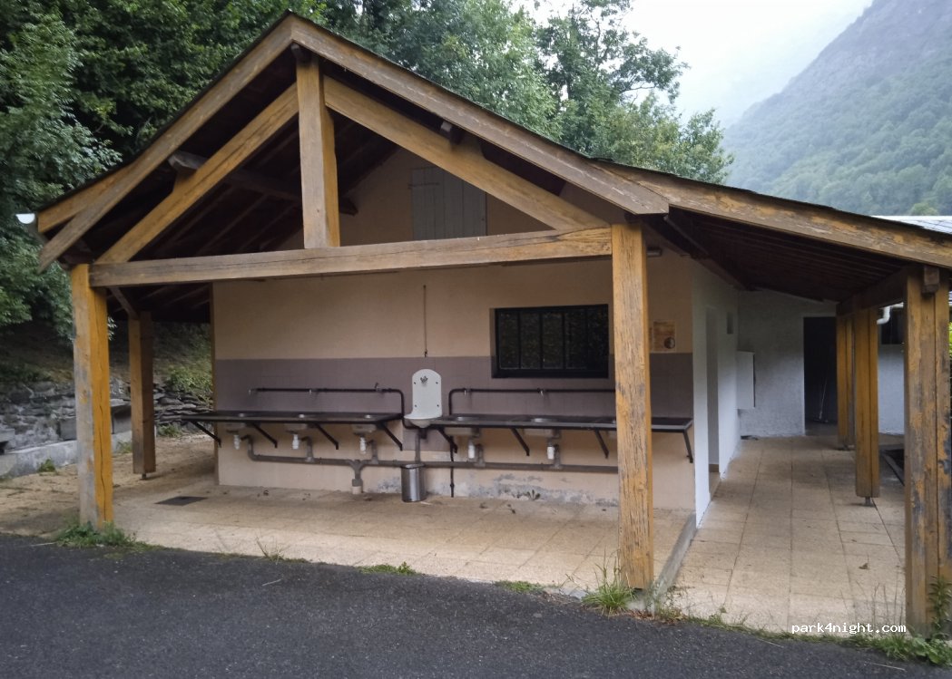 Camping avec quelques emplacements pour Camping cars et autre. Piscine, ping pong, boules, bar. Bon accueil, sanitaires propres. Proximité ruisseau. Calme et gérants sympathiques. Bon départ pour le col du Tourmalet et Luz Ardiden. Tarif 18€ pour un emplacement avec électricité 2 personnes.