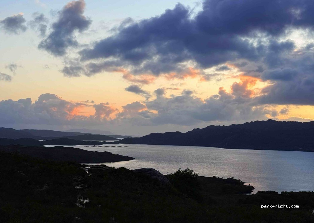 Großer Parkplatz, aber nur für wenige Camper, wenn man einigermaßen eben stehen will. Tolle Aussicht. Abends/nachts war es sehr windig, dafür keine Midges.