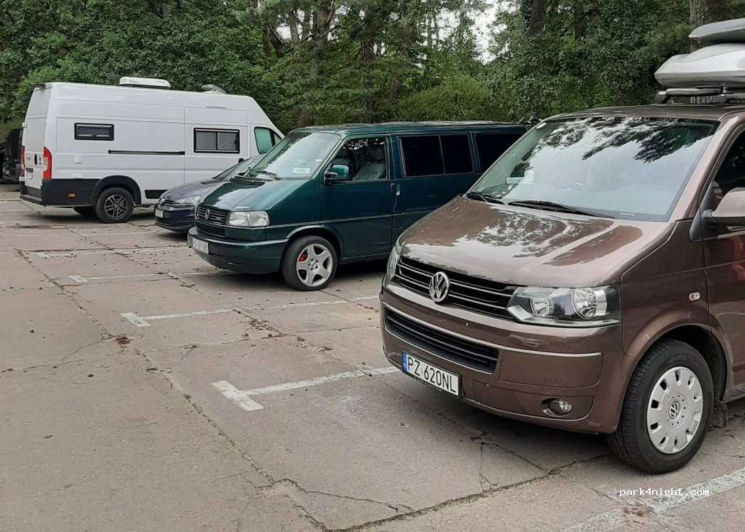 CZ—Parkoviště, ke kterému vede poměrně hrbolatá cesta je hezky schované od hluku města, i tak nás ale v noci rušila oslava v tamním stánku. Toi-toi jsou funkční a nacházejí se cestou na pláž. Cena je 10zł/h (max. 50zł) 10:00-21:00. EN—Very bumpy road leads to this secluded parking, we where disturbed by a b-day party in the snack bar. Nice toi-toi by the beach. 10zł/h (max. 50zł) 10:00-21:00.