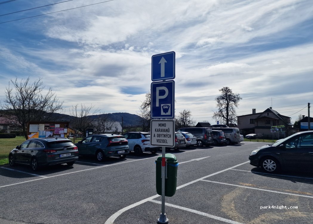 Parking payant, pour camping-car et bus 150 czk (environ 6€), de 8:00 à 18:00 et si vous voulez passez la nuit il faut rajouté 4€. On paye a un parcmètre, qui ne prend que de la monnaie. Idéalement placé pour faire la randonnée dans le labyrinthe de Skalni Mesto.