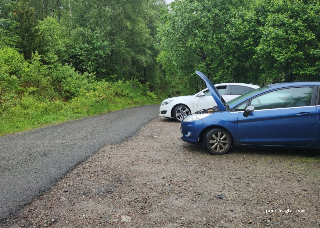 Sentiers forestiers à travers le domaine Fassfern. Aire de pique-nique / parking pour 2/3 campeurs.