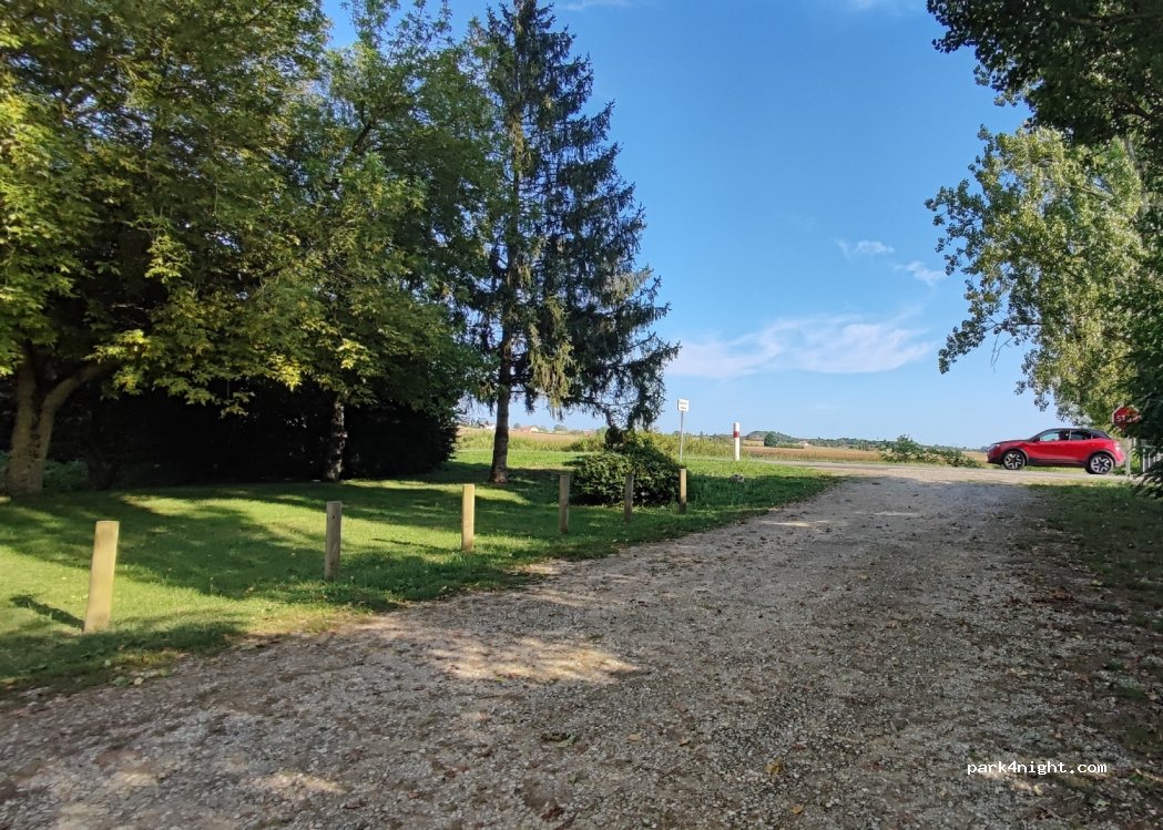 terrain plat, route passante en journée mais moins la nuit. quelques tables de pique nique. nous avons très bien dormi. ok pour grand camping car.