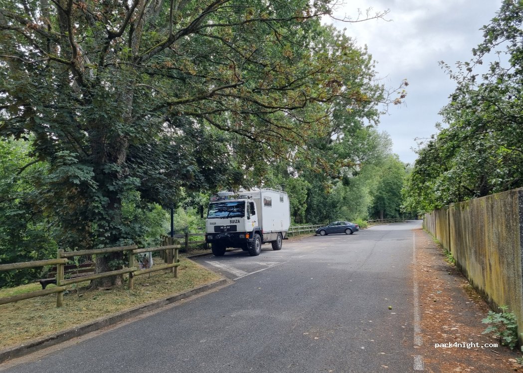 Parking très calme et à l’abris des regards au bord de la rivière donc quelques moustiques. Un p’tit chemin piéton a côté pour se balader et boulangerie à 2 min à pied.