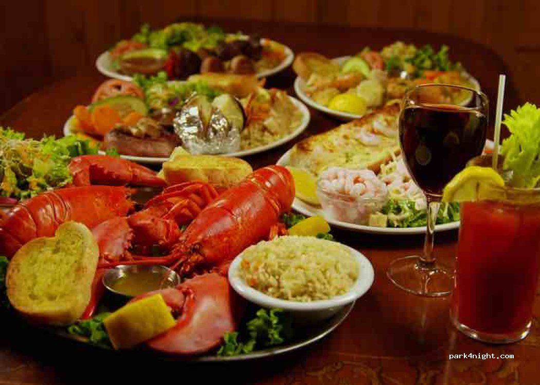Stationnement sur le bord de la 132. Vue sur les statuts de Marcel Gagnon qui sortent du fleuve. 10% de rabais sur le souper le soir même. Toilettes (2) incroyablement propres disponibles de jour et de nuit avec un dépôt de 5$ pour avoir la clé.