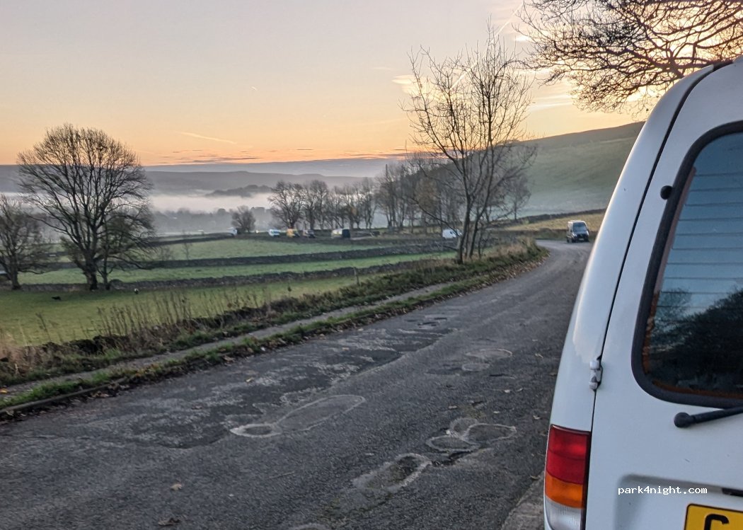 Stayed 2 nights. Great internet on 3. Nice views, but nicer at the road higher up Mam Tor. This one also has more traffic noise as it's more level, so people drive faster, including some trucks flying by. Busier at the far end of the road, but where we parked we were on our own. 25 minutes walk into town. There are toilets for customers only at the Speedwell Cavern's car park 10 minutes away.