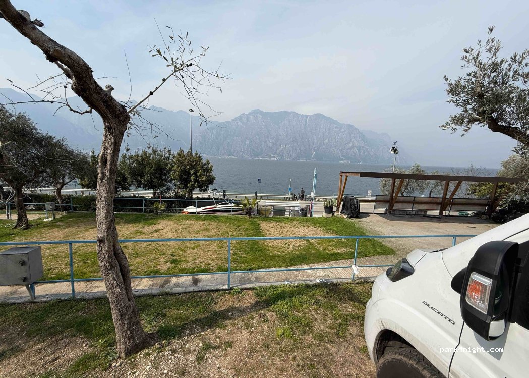 Nur eine Straße trennt den See vom Platz. Der Gardasee Traumhaft schön. Allerdings finde ich 16€ Stellplatz und ich musste um dort stehen zu können für 2 Personen a‘ 11€ bezahlen obwohl ich alleine war. Die Frau am Empfang ist sehr nett und kann Deutsch.
